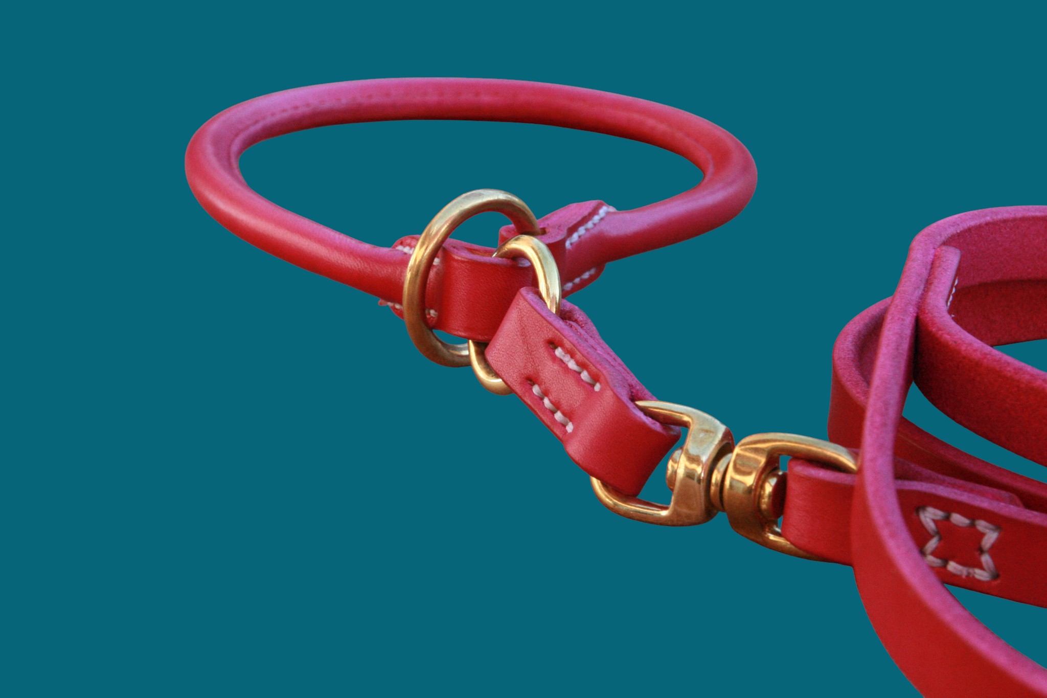 • Principe du modèle 360 : laisse réalisée en 2 parties – assemblage grâce un émerillon favorisant la rotation des cuirs